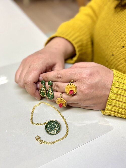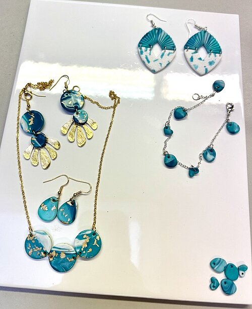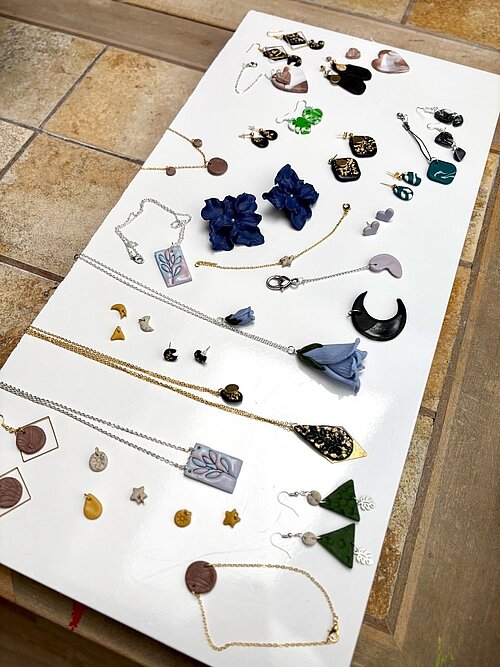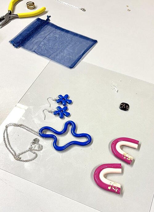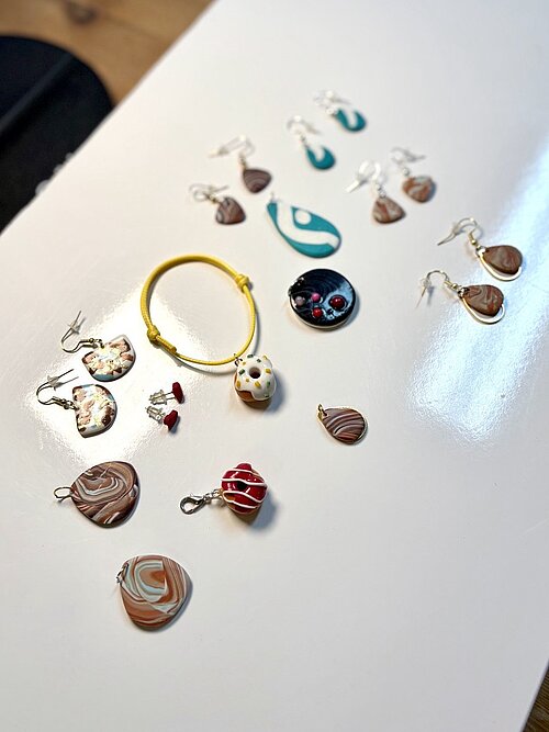 In diesem FIMO-Schmuck-Kurs gestaltest du einzigartige Schmuckstücke aus Polymer Clay / FIMO® (ofenhärtende Modelliermasse). Ich begleite dich bei der Herstellung deiner Schmuckstücke, z. B. Ohrringe, Armbänder oder Ketten.
